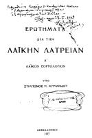 Ερωτήματα δια την Λαϊκήν Λατρείαν Βιβλίο για τα λαϊκά λατρευτικά έθιμα. -