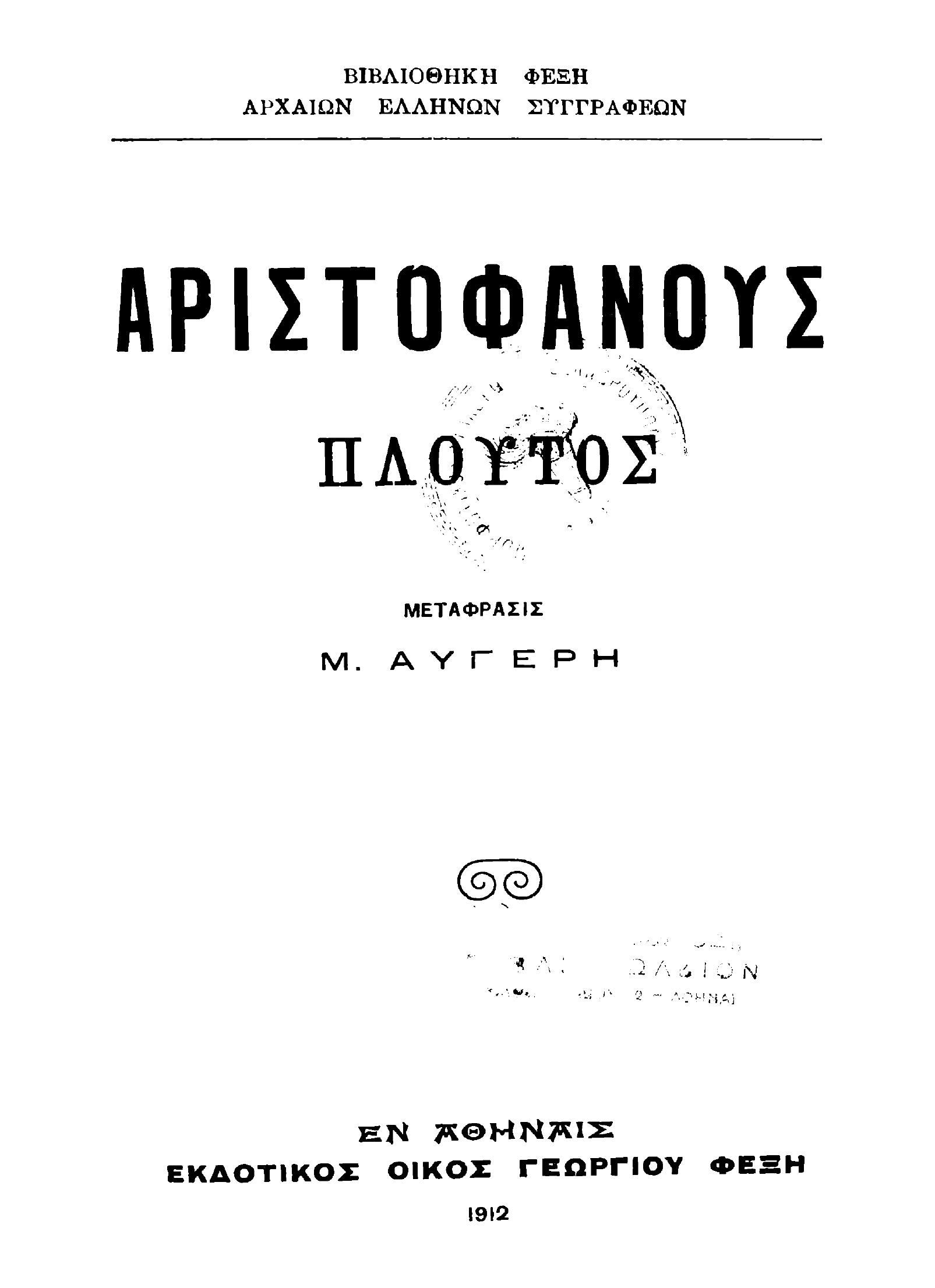 Μετάφραση της κωμωδίας "Πλούτος" του Αριστοφάνη.