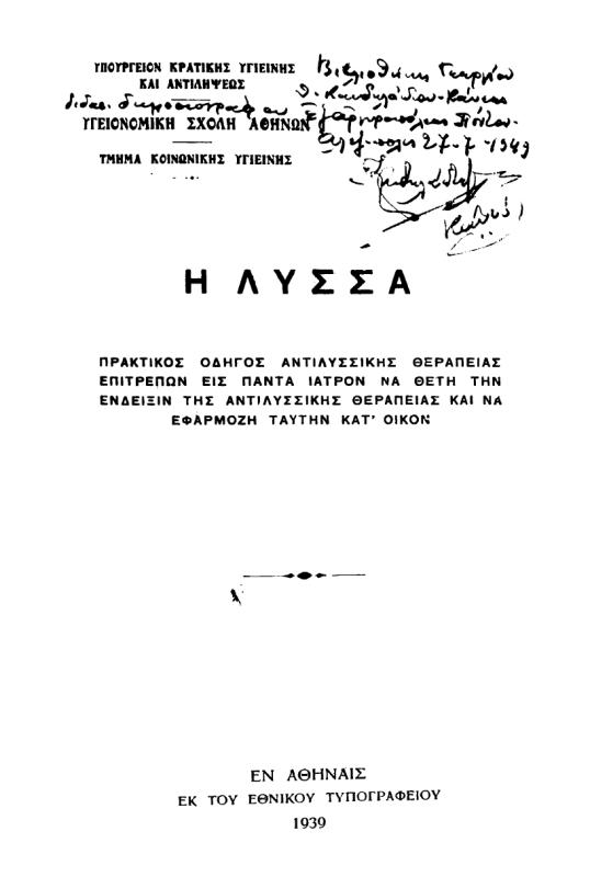 Υπουργείον Κρατικής Υγιεινής και Αντιλήψεως. Υγειονομική Σχολή Αθηνών. Τμήμα Κοινωνικής Υγιεινής