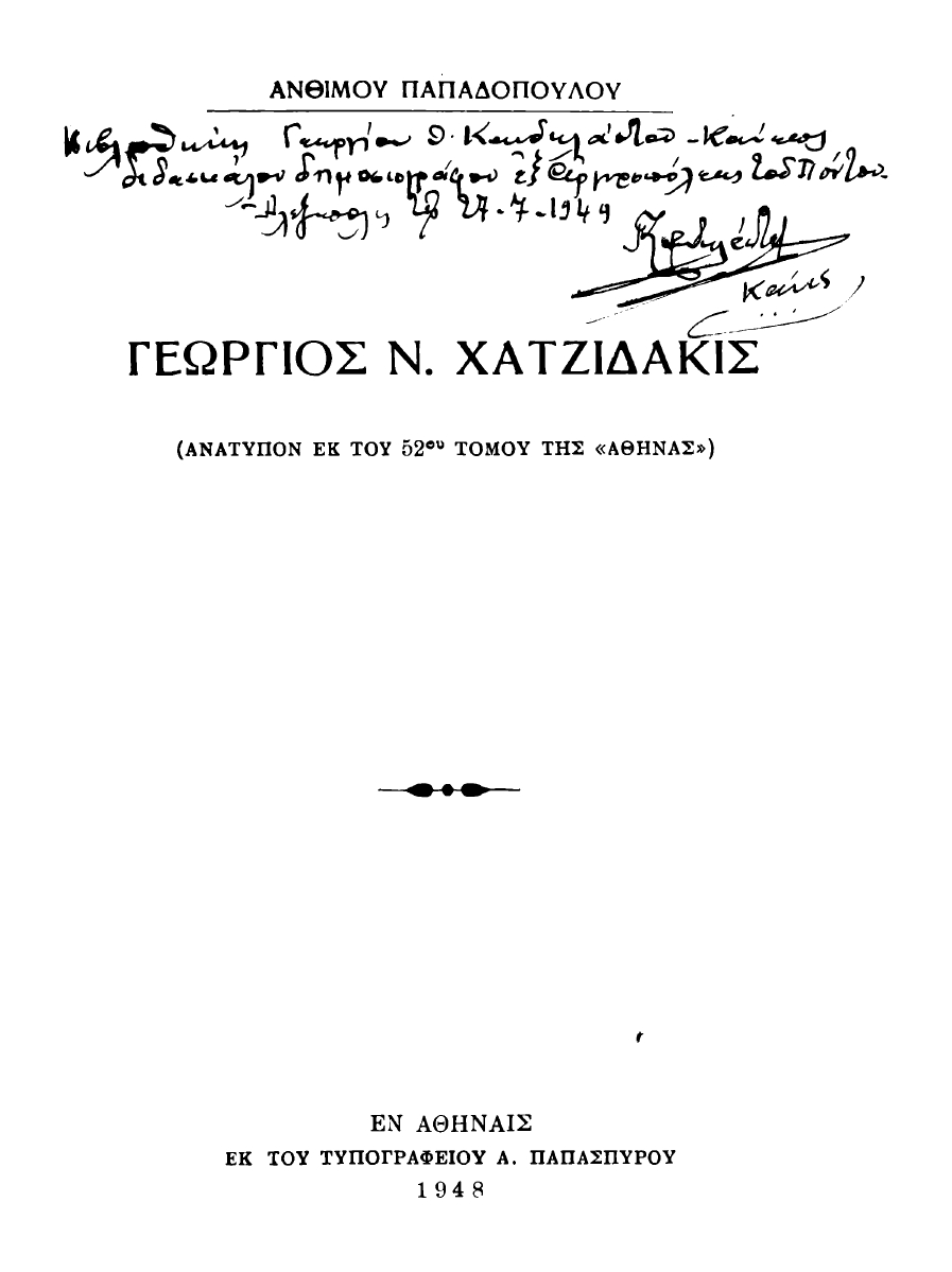 Βιογραφικό έργο για τη ζωή και το επιστημονικό έργο του Γεώργιου Ν. Χατζιδάκη.
