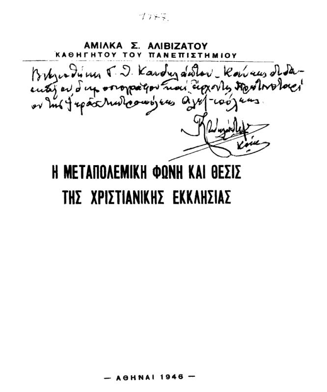 Εισήγηση του καθηγητή Θεολογίας Αμίλκα Αλιβιζάτου στο ραδιόφωνο για τη χριστιανική πίστη μετά τον Β΄ Παγκόσμιο Πόλεμο.