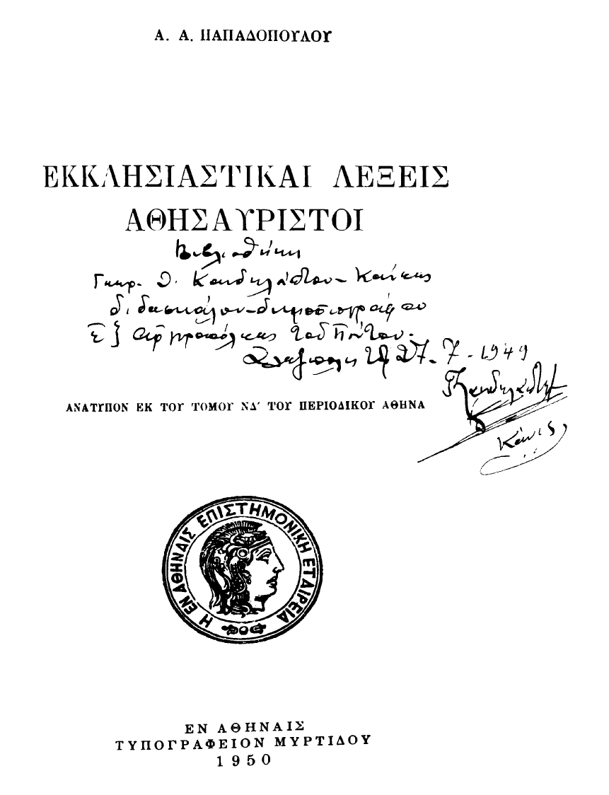 Εκκλησιαστικαί Λέξεις Αθησαύριστοι