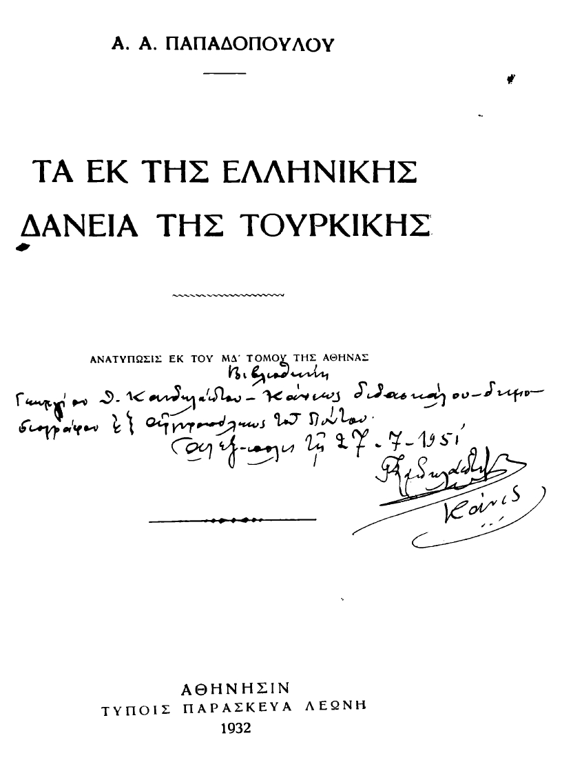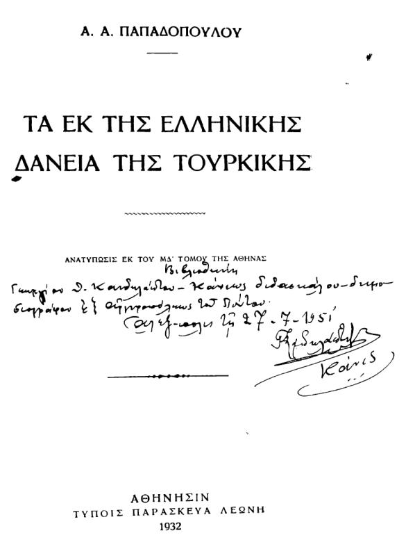 Τα εκ της Ελληνικής Δάνεια της Τουρκικής