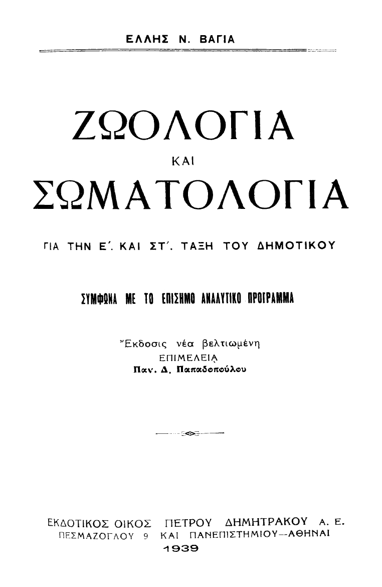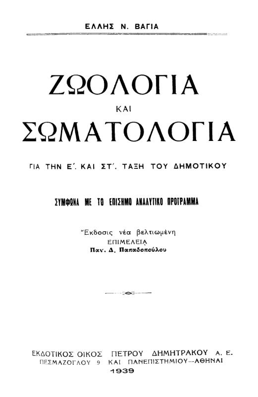 Βιβλίο ανατομίας και ζωολογίας της Ε΄ και της ΣΤ΄ Δημοτικού.