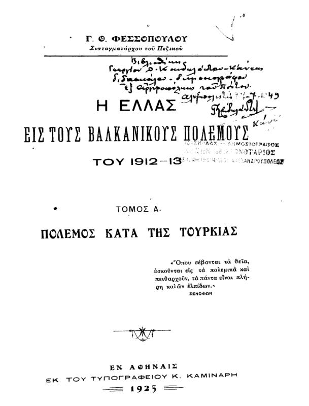 Η Ελλάς εις τους Βαλκανικούς Πολέμους του 1912-1913