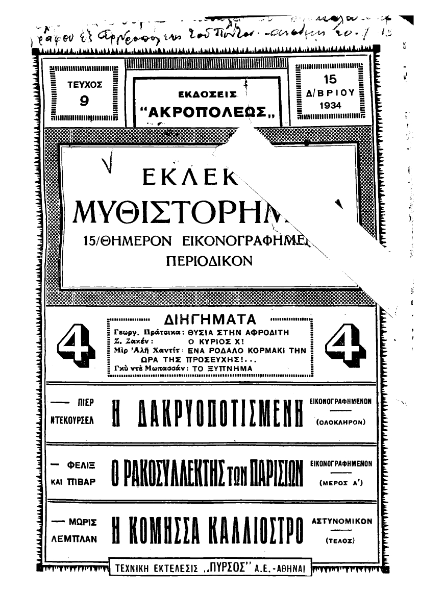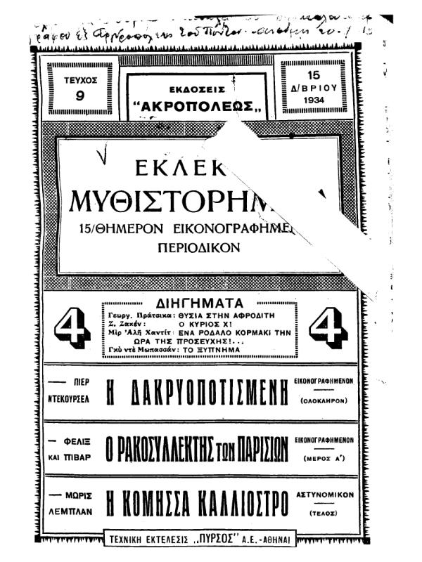 Τεύχος του λογοτεχνικού περιοδικού "Εκλεκτά Μυθιστορήματα".