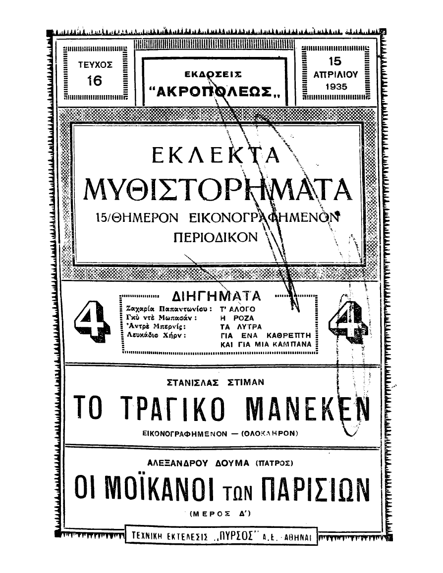 Τεύχος του λογοτεχνικού περιοδικού "Εκλεκτά Μυθιστορήματα".
