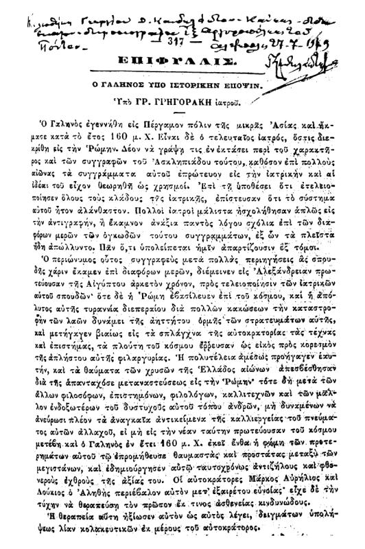 Ο Γαληνός Υπό Ιστορικήν Έποψιν