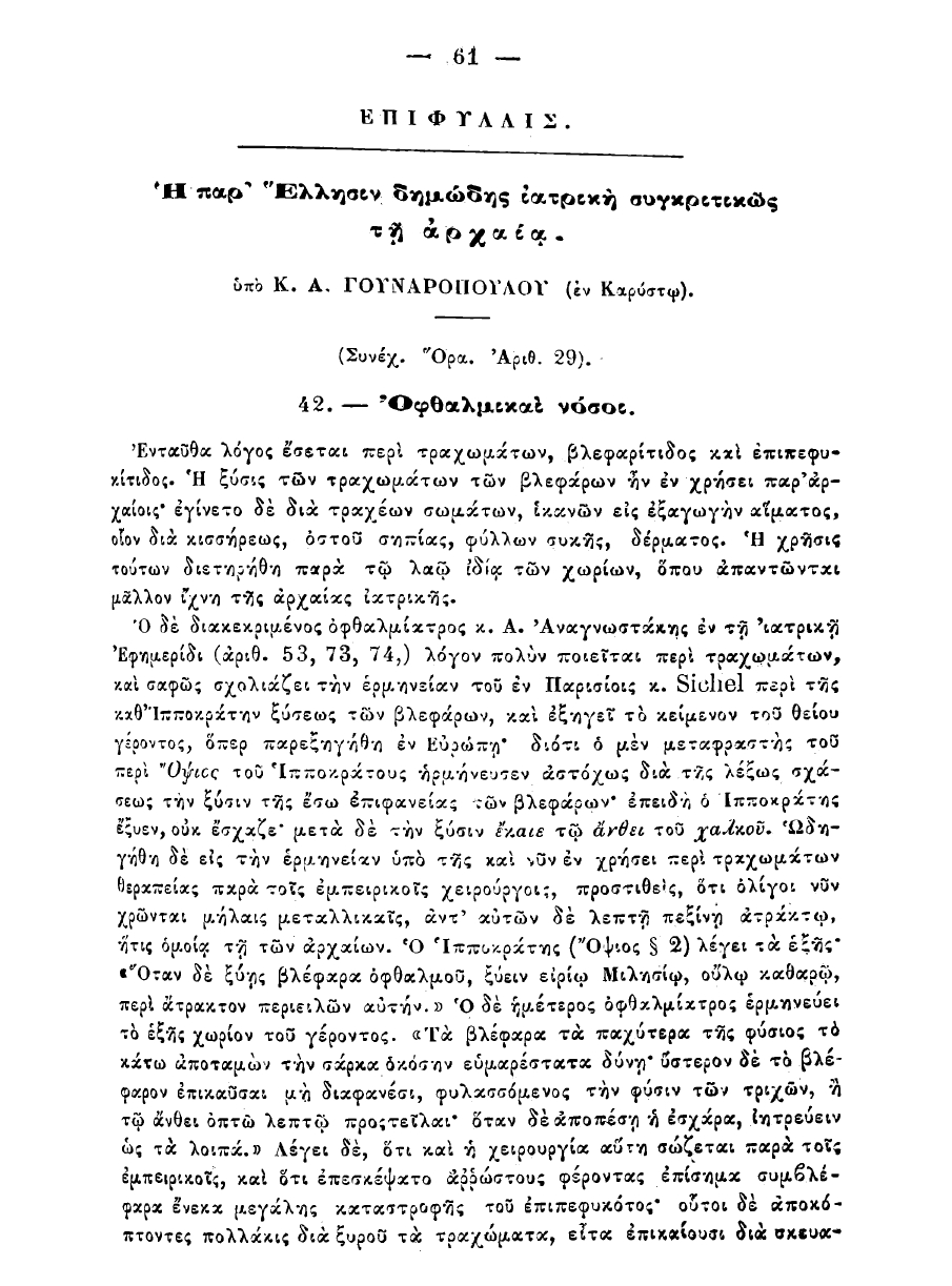 Η παρ' Έλλησιν Δημώδης Ιατρική Συγκριτικώς τη Αρχαία