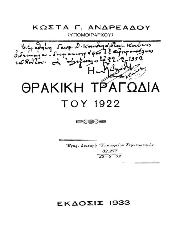 Βιβλίο για την Μικρασιατική Καταστροφή και την Ανατολική Θράκη.